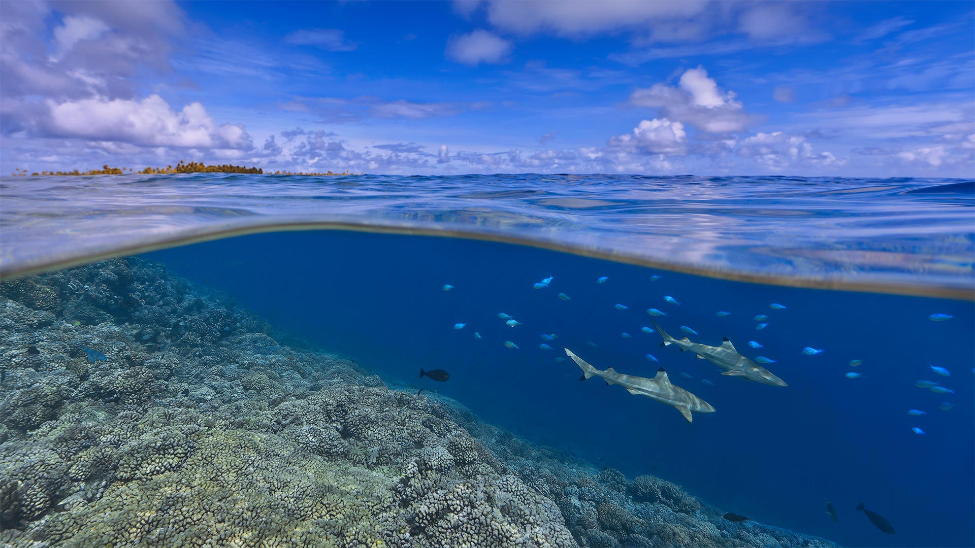 Blacktip reef sharks off the coast of Tahiti, French Polynesia (© Paul Mckenzie/Minden Pictures)