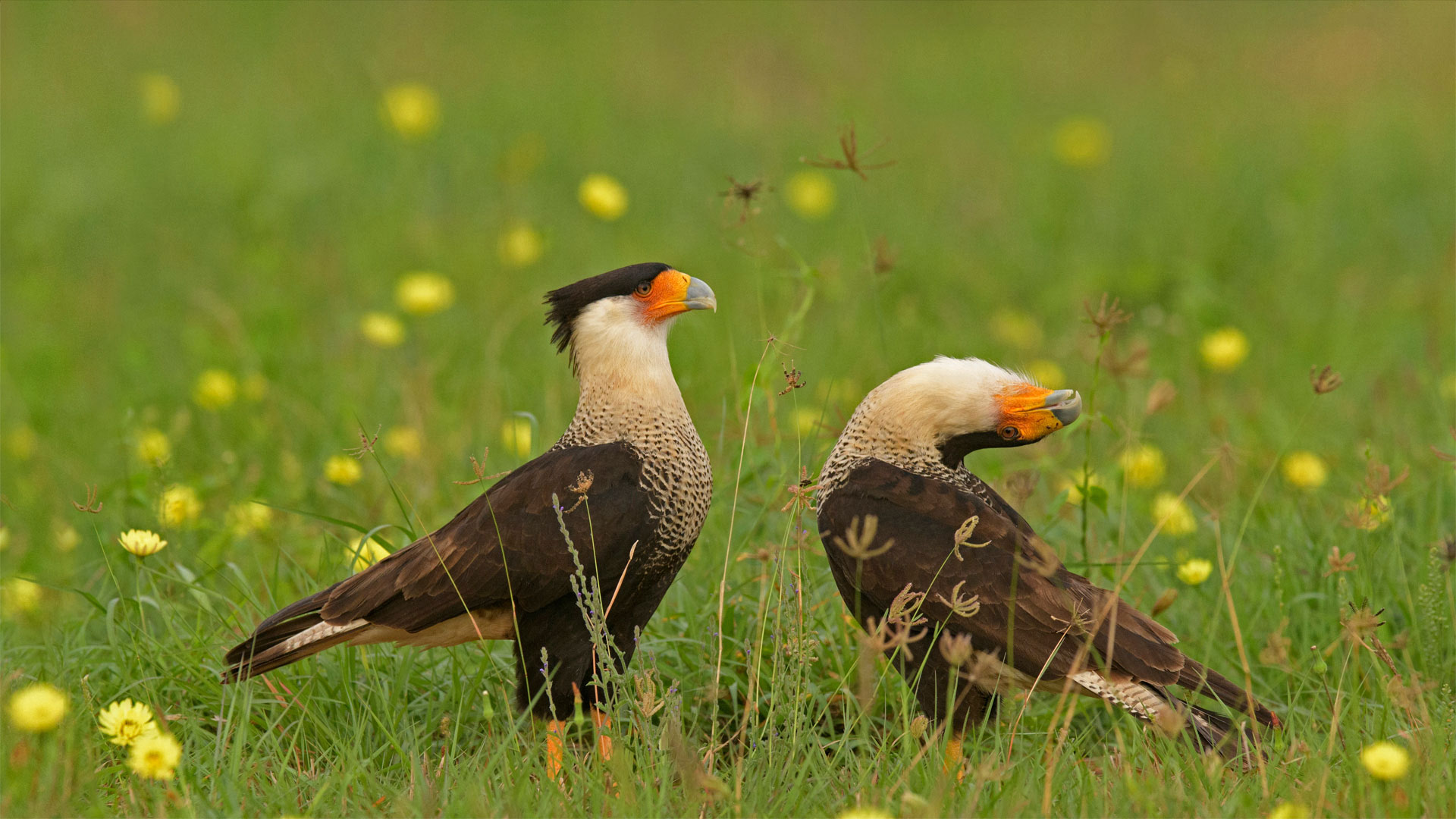 Crested caracara birds courting in Texas (© Alan Murphy/Minden Pictures)