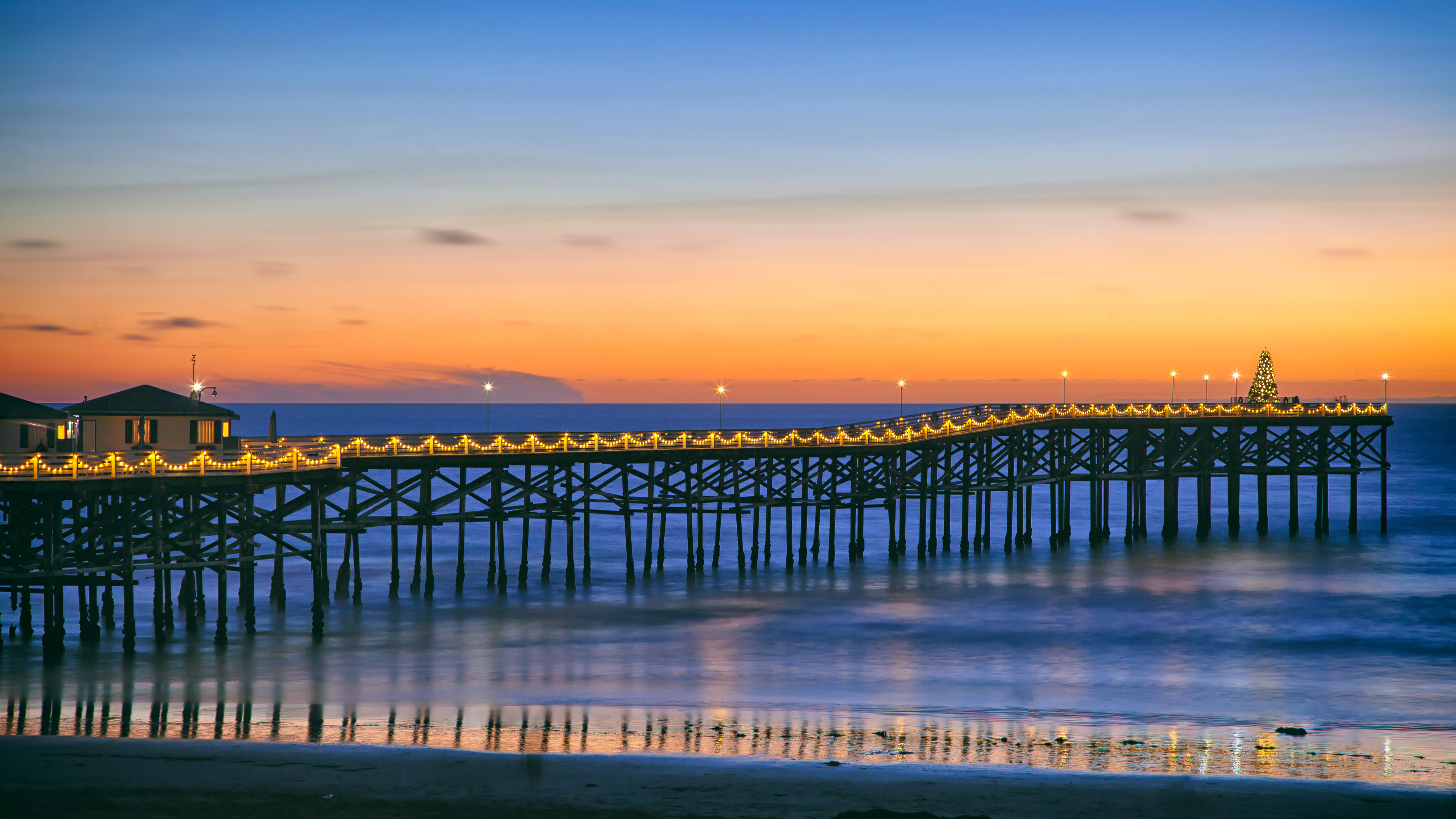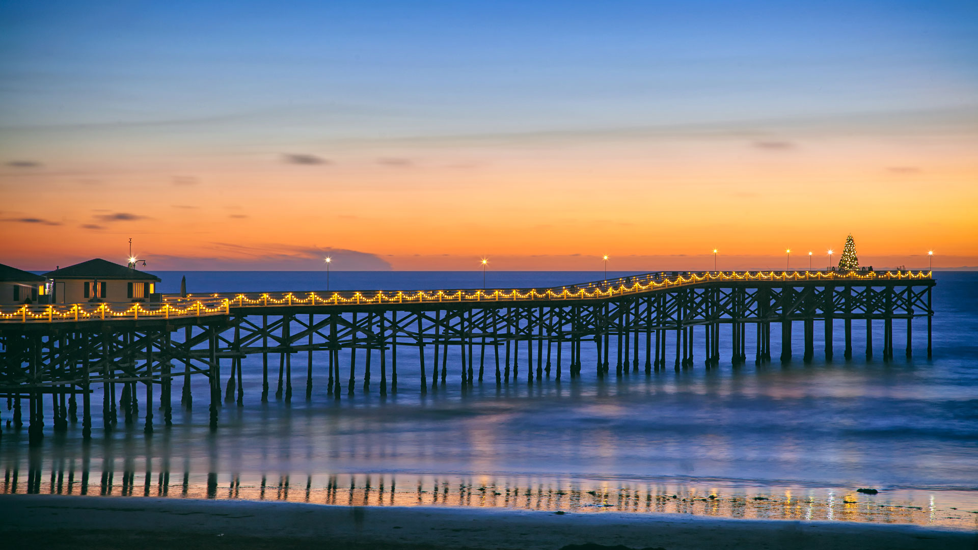 Christmas tree at Crystal Pier, Pacific Beach, 圣地亚哥, 加利福尼亚州 (© SamAntonioPhotography/盖蒂图片社)
