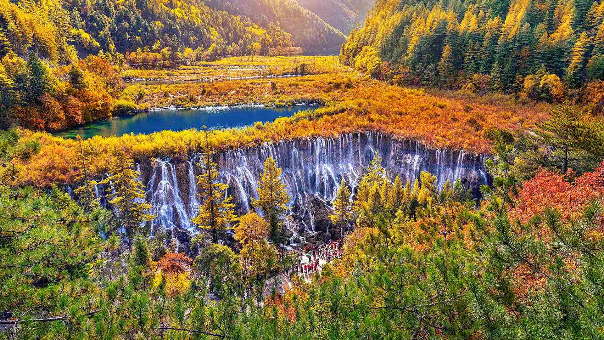 秋季九寨沟国家公园里的诺日朗瀑布, 四川省, 中国 (© tawatchaiprakobkit/Getty images)